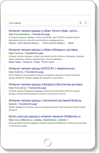 Во-первых, это трафик высокого качества в Беларуси. Во-вторых, высокая конверсия в продажу в или обращение т.к сайт показывается по максимально целевой аудитории в отличии от контекстной рекламы. Продемонстрируйте Ваши товары и услуги именно потенциальным клиентам которые вводили целевой поисковой запрос.