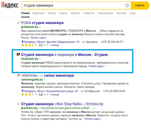 Была поставлена задача разработать новый сайт для новой студии маникюра frezanails.by. После разработки сайта были проведены технические работы по оптимизации сайта и выводу его на высокие позиции поисковых систем.