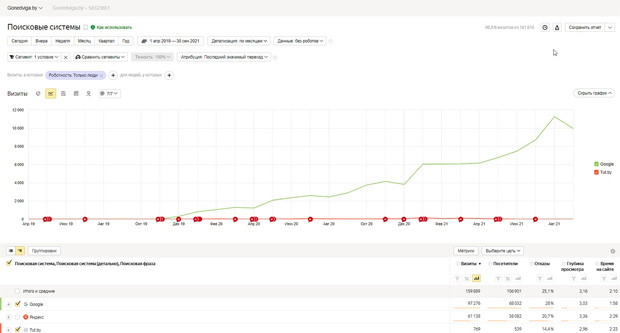 За 1,5 года посещаемость составила более 16000 переходов из поисковых систем Яндекса и Google.