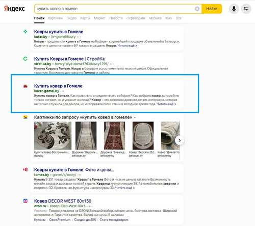 Среди первой десятки сайтов с предложениями он видит ваш, желательно чтобы он размещался одним из первых.